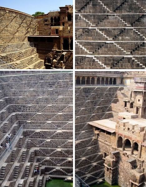 Mungkin salah satu contoh yang paling indah pola dalam arsitektur, abad ke-10 Chand Baori baik di negara India, Rajasthan adalah dunia yang paling dalam, memanjang 100 meter di bawah permukaan bumi. Dibangun sebagai solusi untuk masalah pasokan air kronis di daerah kering, sumur memiliki total 3.500 langkah dalam 13 tingkatan diatur dalam suatu bentuk 'V' terbalik dan bersebelahan dengan kuil Mata Harshat. Dinding sangat curam ketika berdiri di bawah, Anda kadang-kadang tidak bisa melihat orang yang berada di langkah di atas Anda.