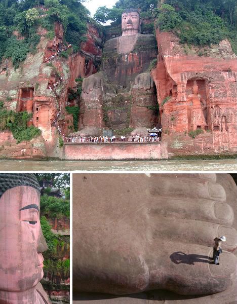 Batu berukir Buddha terbesar di dunia menara di atas 232 meter ke udara, dengan mengukur jari-jari 11 meter panjang dan bahu 92-kaki-panjang cukup besar untuk lapangan basket. Leshan Giant Buddha menghadap pertemuan tiga sungai di Provinsi Sichuan Cina. Dimulai pada Dinasti Tang pada tahun 713, Sang Buddha dibangun atas perintah rahib bernama Hai Tong yang berharap untuk berdoa roh air temperamental dianggap bertanggung jawab atas kecelakaan kapal banyak. Butuh ribuan pekerja lebih dari 90 tahun untuk menyelesaikan proyek tersebut.